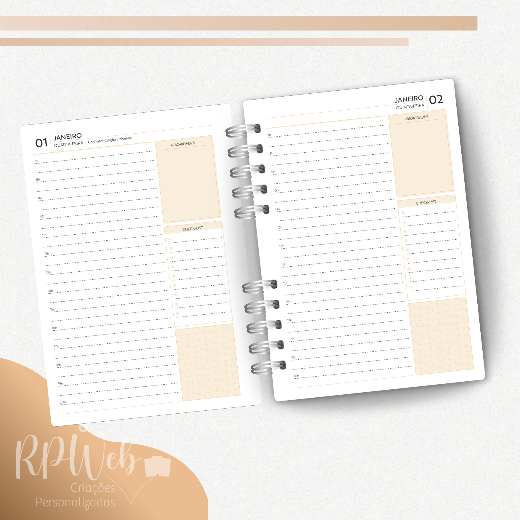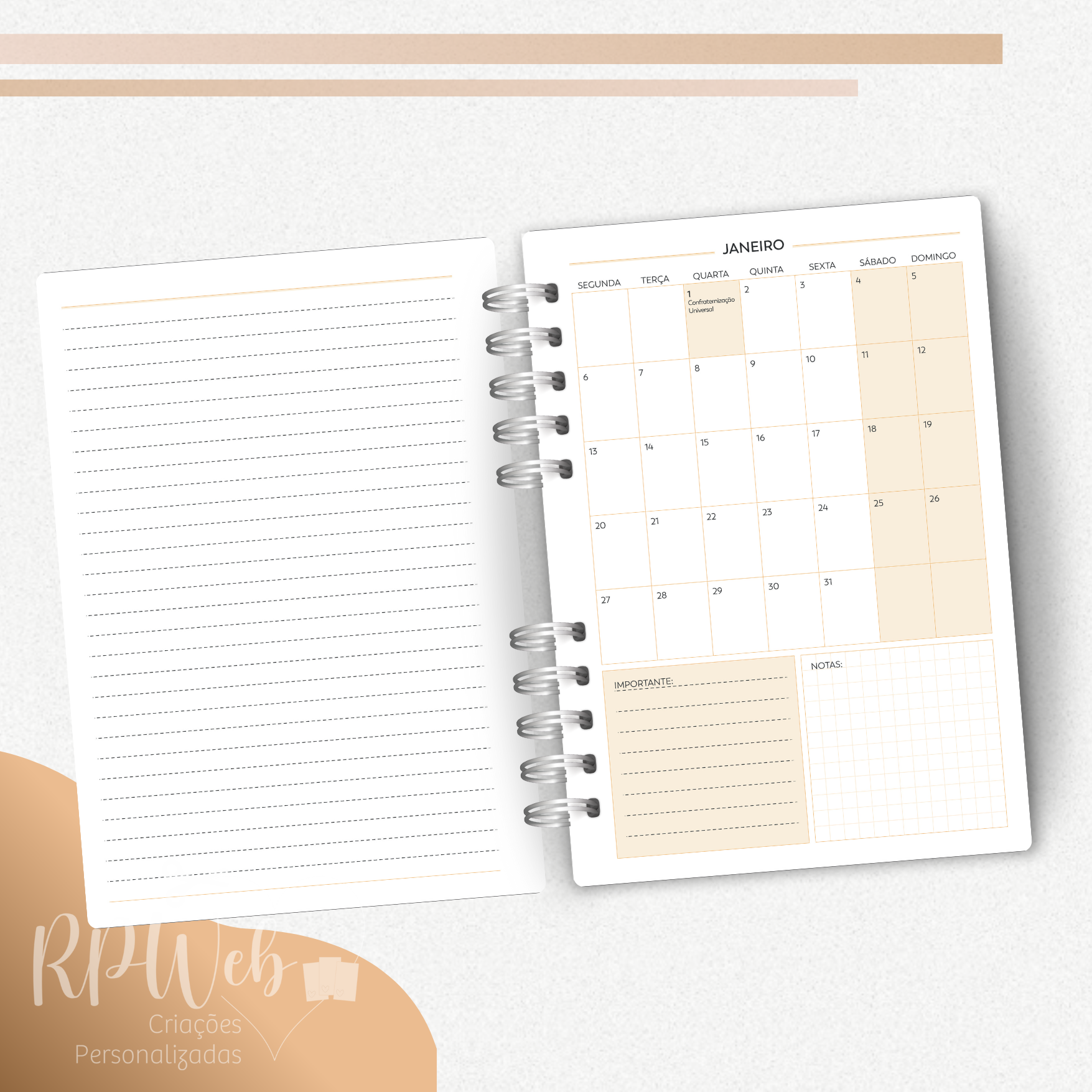 Agenda Personalizada 2025 com encadernação em Wire-o.